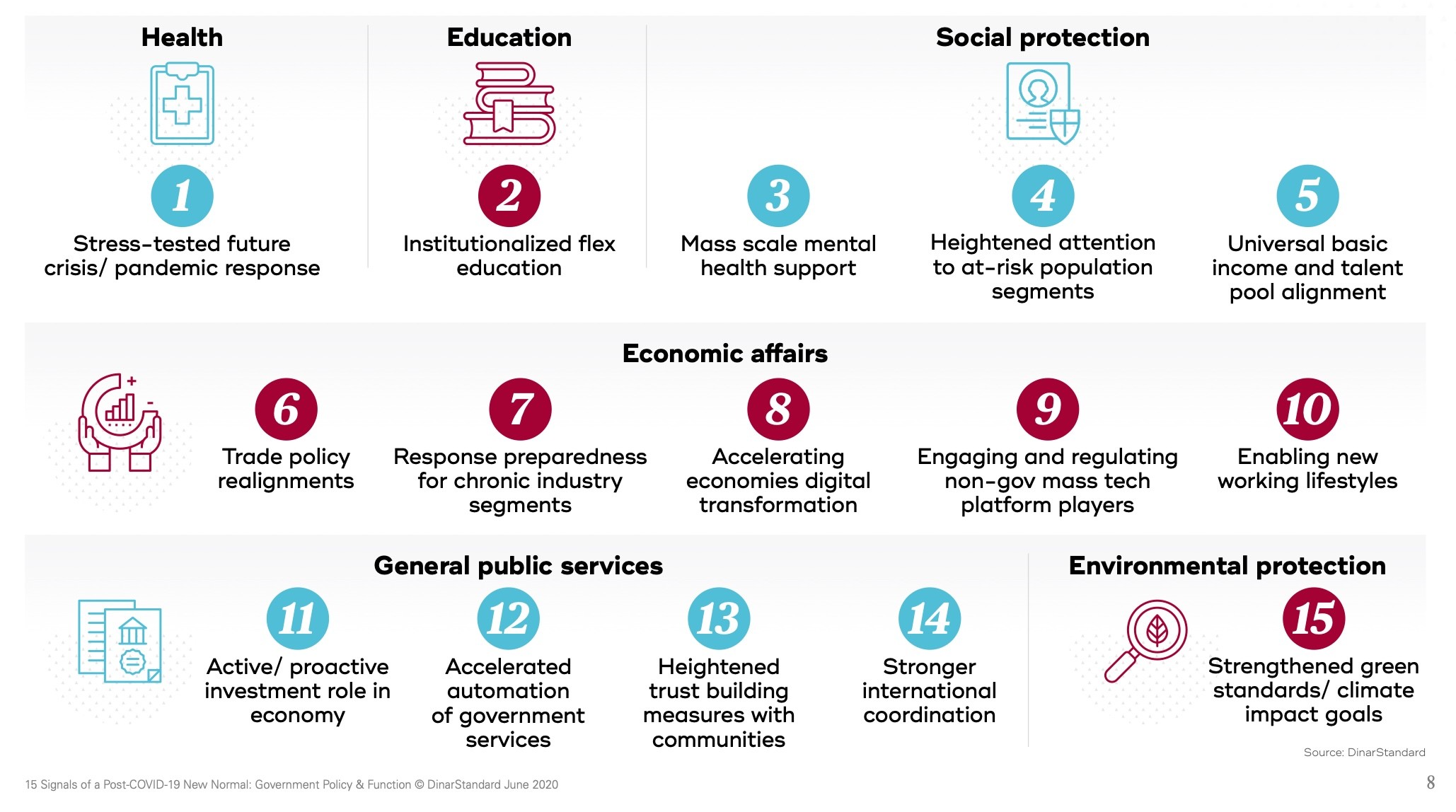 This Insights Brief addresses a key strategic question, “What will the post-COVID-19 ‘new normal’ look like for governments?”; and identifies 15 new government policy and reform areas in health, education, social protection, economic affairs, general public services, and environmental protection.
